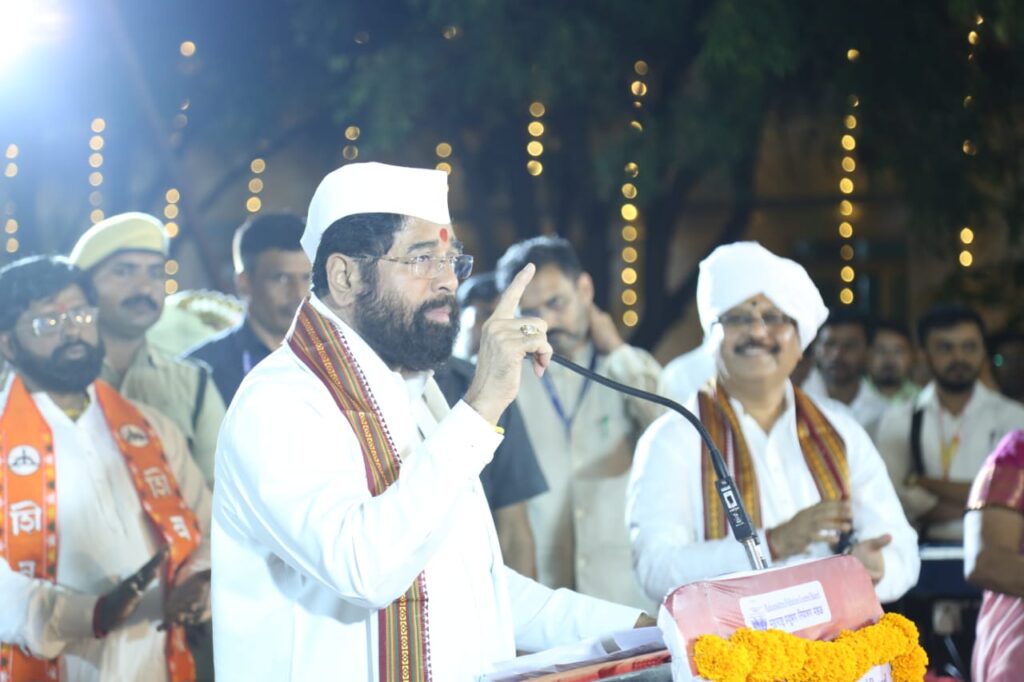 पंढरपूर येथील शासकीय विश्रामगृहाच्या परिसरात महाराष्ट्र प्रदूषण नियंत्रण मंडळ, पर्यावरण विभाग व महाराष्ट्र सांस्कृतिक कला मंच ठाणे यांच्या संयुक्त विद्यमाने आयोजित ‘कार्तिकीची वारी पंढरीच्या दारी’ या उपक्रमाच्या समारोपप्रसंगी उपमुख्यमंत्री श्री. शिंदे बोलत होते. यावेळी ग्रामविकास व पंचायतराज मंत्री तथा पालकमंत्री जयकुमार गोरे, रोजगार हमी योजना, फलोत्पादन मंत्री भरत गोगावले, गृह (शहरे), महसूल राज्यमंत्री योगेश कदम, प्रदूषण नियंत्रण मंडळाचे अध्यक्ष सिद्धेश कदम, आमदार समाधान आवताडे, आमदार तानाजी सावंत, आमदार राजू खरे, आमदार अभिजीत पाटील, माजी आमदार शहाजी बापू पाटील, जिल्हाधिकारी कुमार आशीर्वाद, मुख्य कार्यकारी अधिकारी कुलदीप जंगम, प्रदूषण नियंत्रण मंडळाचे सचिव एम. देवेंद्र सिंह यांच्यासह अन्य मान्यवर उपस्थित होते.