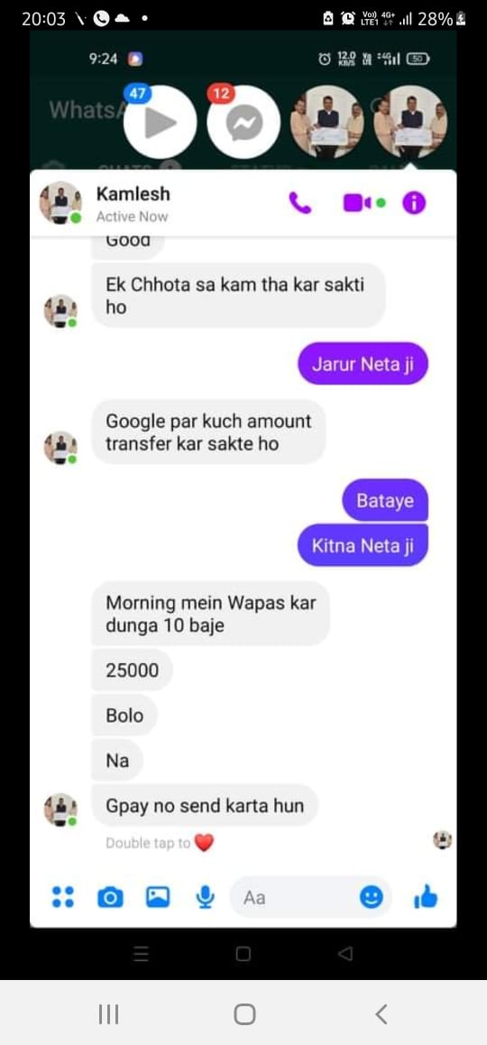 कांदिवलीच्या वॉर्ड क्रमांक 31 भारतीय जनता पक्षाचे नगरसेवक कमलेश यादव यांनी सांगितले की त्यांच्या नावावर पहिला तर एक जाळी फेसबुक अकाउंट बनवले गेले त्यानंतर जवळच्या मित्रांना फ्रेंड रिक्वेस्ट पाठवली गेली त्यानंतर नगरसेवकांत सोबत जेव्हा फेसबुक अकाऊंटवर त्यांचे मित्र जोडले गेले तेव्हा ह्याकारणे अपघात झाल्याचे सांगून आणि हॉस्पिटलमध्ये ऍडमिट करायच्या बहाण्याने कमलेश यादव यांचा फोटो वापरून लोकांकडून तात्काळ मदत करण्यासाठी 20000 कोणाकडे दहा हजारांची मागणी केली.